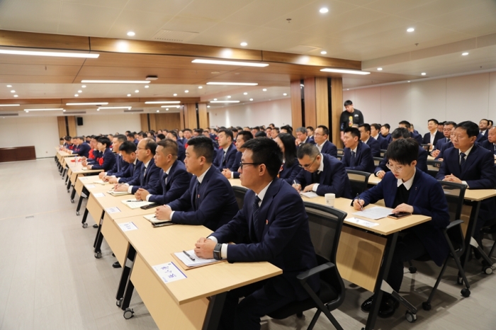 集團(tuán)公司高層領(lǐng)導(dǎo)、中級(jí)管理人員、受表彰獎(jiǎng)勵(lì)的優(yōu)秀單位和個(gè)人、總部全體及2023年度新員工,共計(jì)300余人參加了會(huì)議。副總經(jīng)理、總會(huì)計(jì)師嚴(yán)海軍主持會(huì)議。